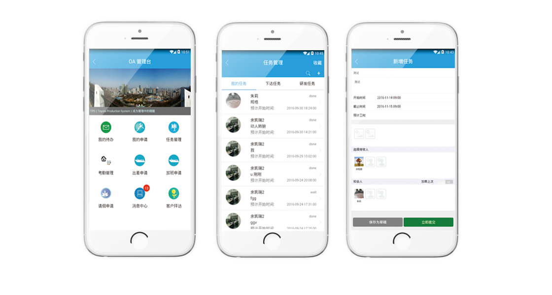 支持手機APP、微信移動運用,實時接收各系統消息,查詢數據 不再受空間限制,在外辦公無束縛!